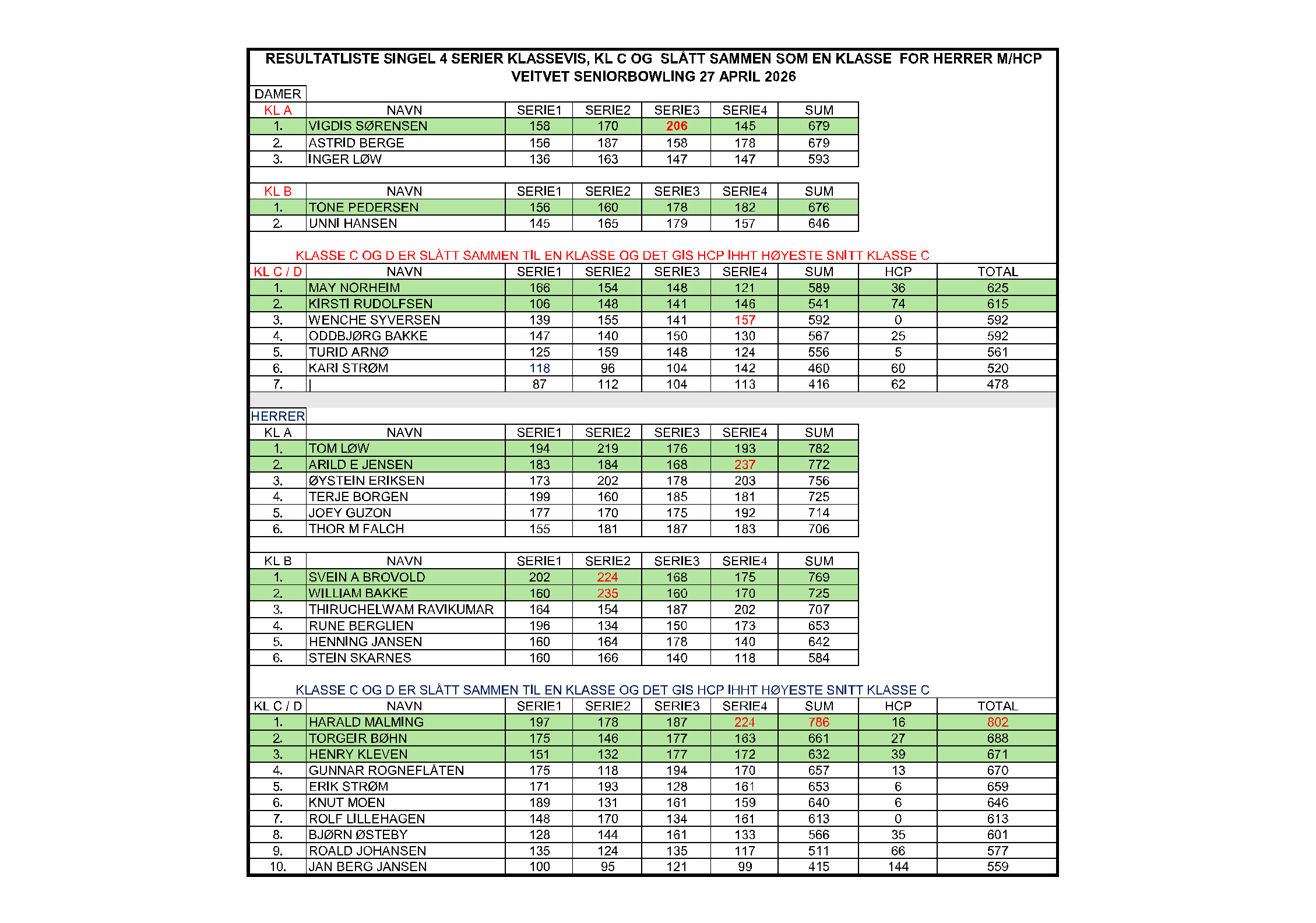 Topp 3 serier u/hcp : Arild E J 237. William 235, Svein A 224 og Harald 224