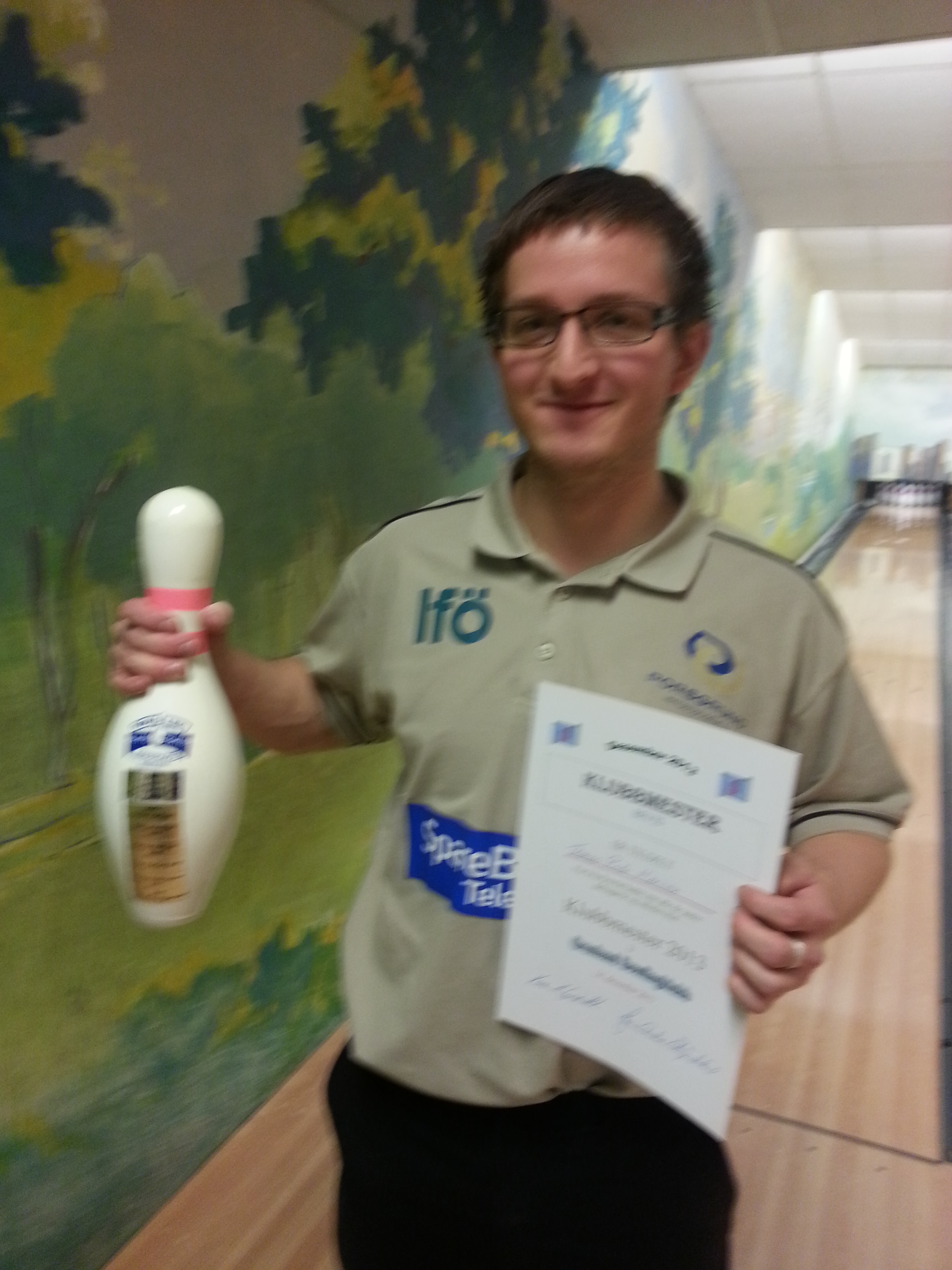 Bowlingstatuett, kniv og diplom til Erik