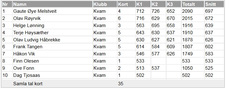 - Hcp i finalen vert snittet av hcp på dine tre beste kort.
