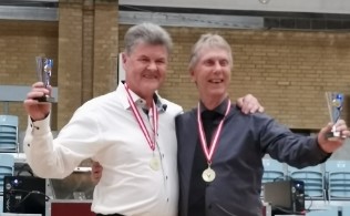 Laurdag var det dobbel som stod på programmet. Der var det berre to klassar; dame- og herreklasse. Ove og Frank spelte jamt med 788 og 801 over fire seriar. Totalt 1589 som heldt til gull med 9 pinnars margin til dei danske sølvvinnarane.