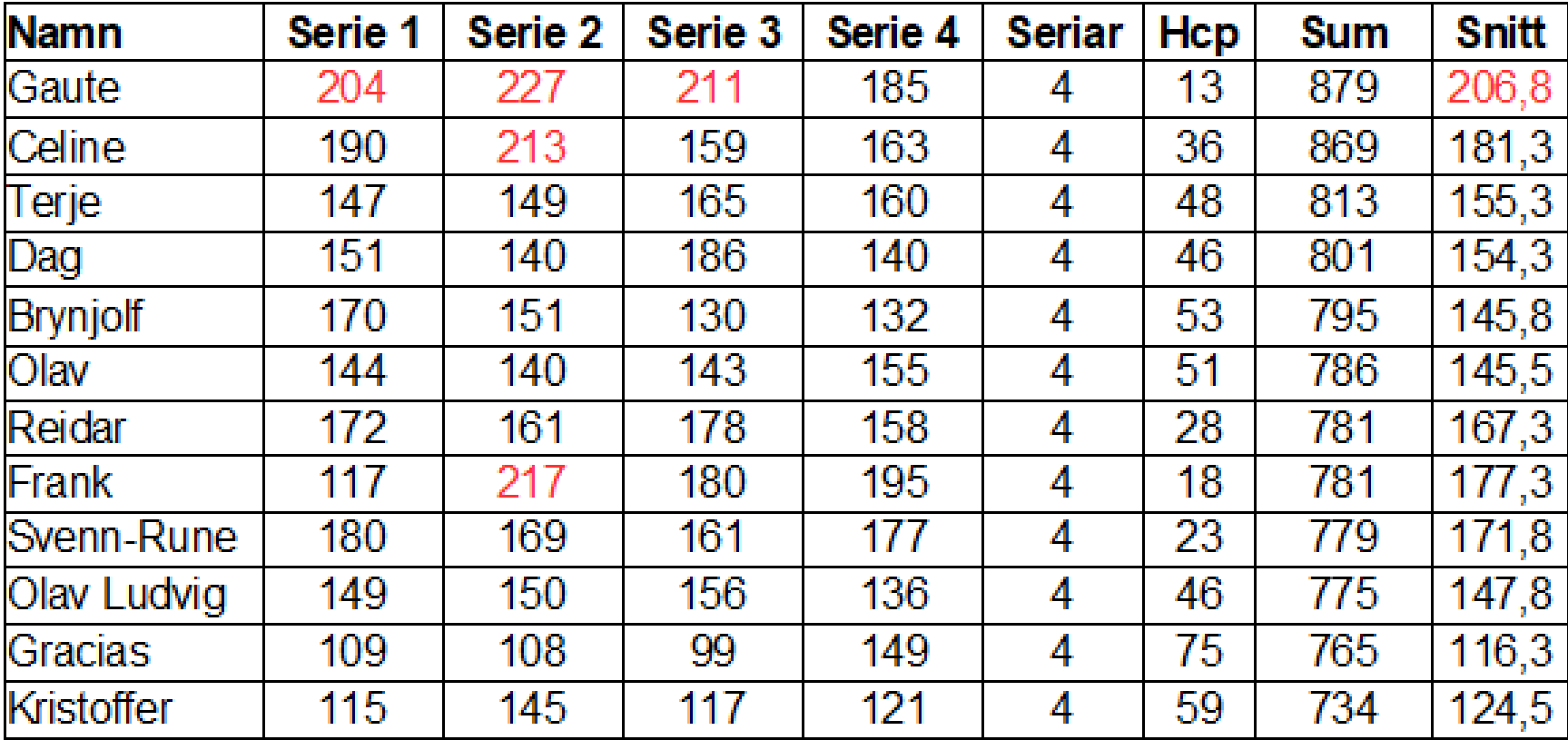 Tolv spelarar i romjuls/månadscupen. Det vart ein kamp mellom undomane der Gaute trakk det lengste strået 10 pinnar framom Celine.