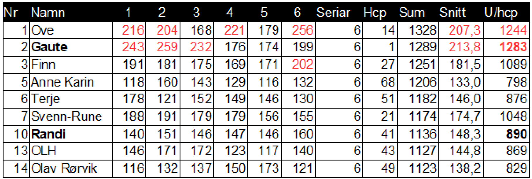 I kveld hadde me ein kombinert månadscup og klubbmeisterskap. Det vart spelt seks seriar med vanleg månadscuo-hcp, men dei seks seriane vart også teljande som klubbmeisterskap - då utan hcp. Klubbmeistrar for 2023 vart Gaute Øye Melstveit og i dameklassen var det Randi Hansen som sikra pokalen. I månadscupen var det Ove Fonn som fekk napp i vandrepokalen og gåvekort.