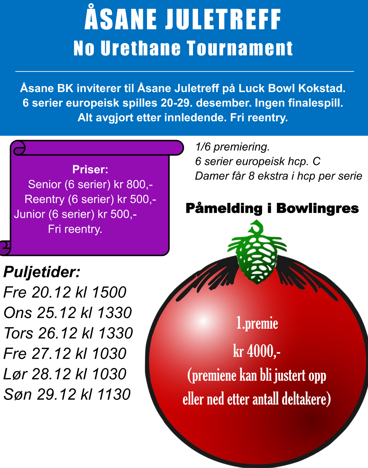 Vedlagt ligg plakat til Åsane Juletreff. Turneringa tillet ikkje urethane-ball utanom som spareball. Ingen finale.