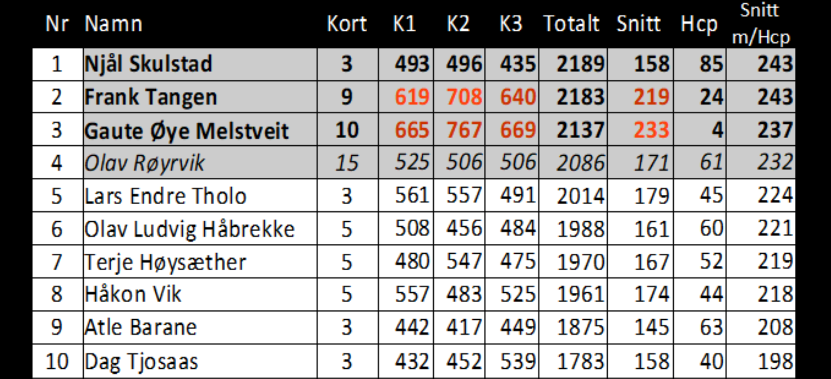 På solsnu kasta fem medlemer seg frampå og spelte kort. Dag og Atle fullførte rekka med tre kort medan Olav Ludvig og Terje forbetra eit av sine tidlegare kort.