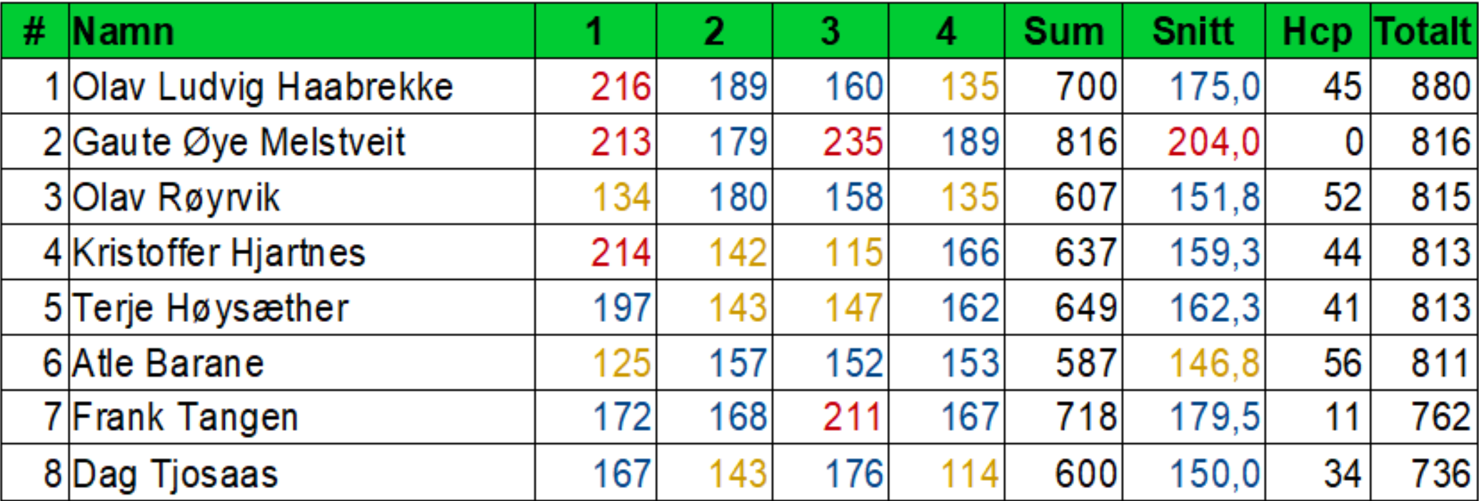 Åtte spelarar duellerte på High Street-profilen om å bli vinnar av månadscupen i mars. Olav Ludvig spelte solid dei tre første seriane og kunne berre cruise inn til siger. Gaute varrt bestemann av eit kobbel på fem stk der det berre skilte 5 pinnar mellom dei.