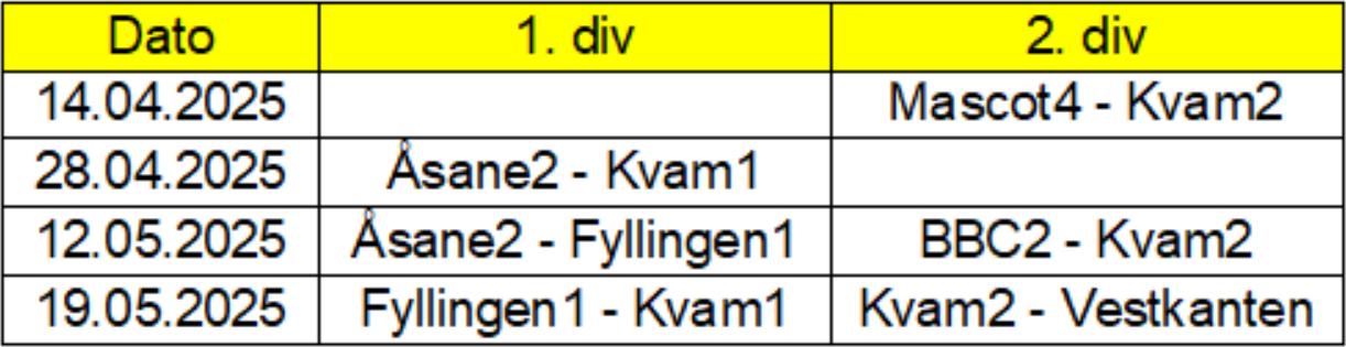 Åsane2 er laget me må koma oss forbi og dei har 4 poengs leiing på oss før dei to siste kampane. Den neste kampen vår er akkurat mot Åsane2 på Kokstad - dette blir ein nøkkelkamp som me MÅ vinna. Det andre laget begge laga skal møta er Fyllingen1. Alle kampane går på Kokstad, men me avsluttar veka etter Åsane2 sin kamp mot Fyllingen1 så me vil vita om det er håp og kva som ev. må til i den kampen.