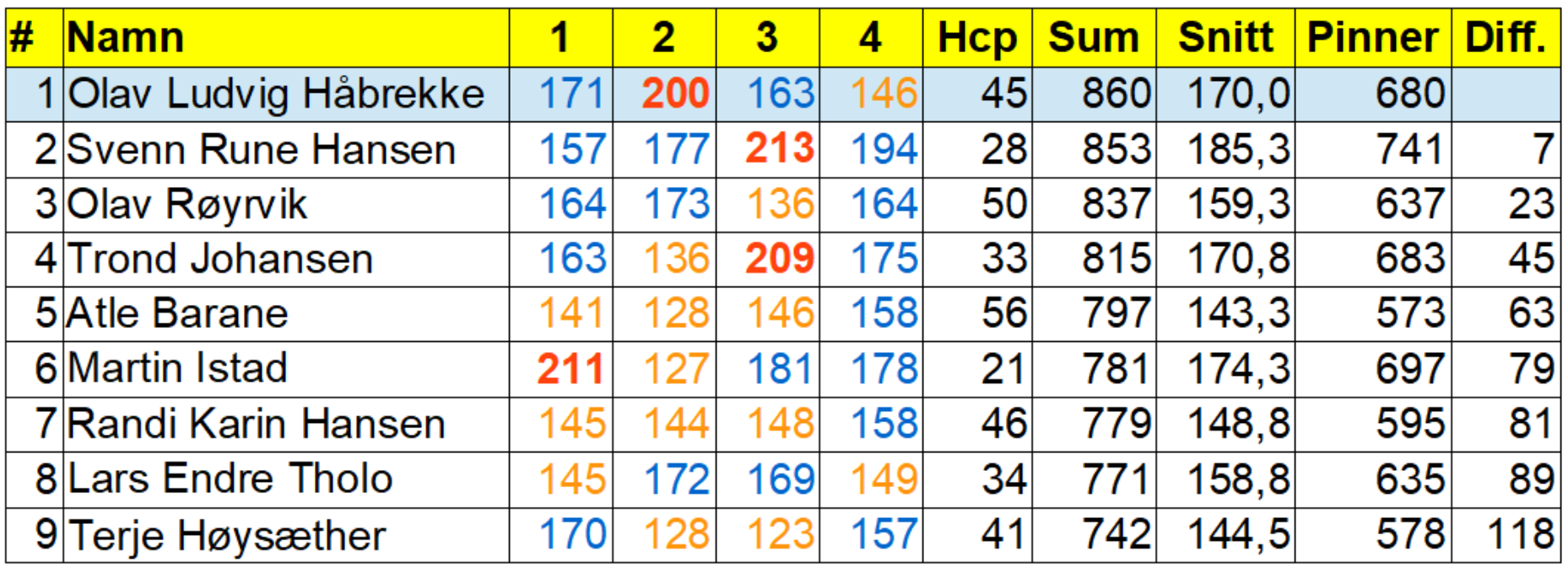 Månadscupen favnar vidt. I kveld var det deltakarar frå Voss til Askøy. Kjekt! Olav Ludvig viste styrke og sikra sigeren med 7 pinnar meir enn Svenn Rune.