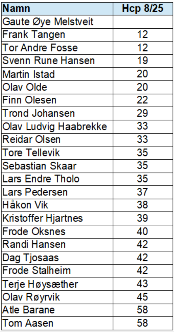Ein fantastisk sumar er på hell og det er tid for aktiviteter innomhus. Og kva er betre enn å pusse støv av kulene og sjekke om svingen framleis er på plass. Sundag kl 18 vert det månadscup for august med 4 seriar og rikeleg med hcp. Auka premiepott men same deltakaravgift (kr. 150?). Send gjerne ein sms til 41573625 viss du har planar om å delta. Hcp for aktuelle spelarar finn du ved å opne denne artikkelen og så klikke på illustrasjonen.