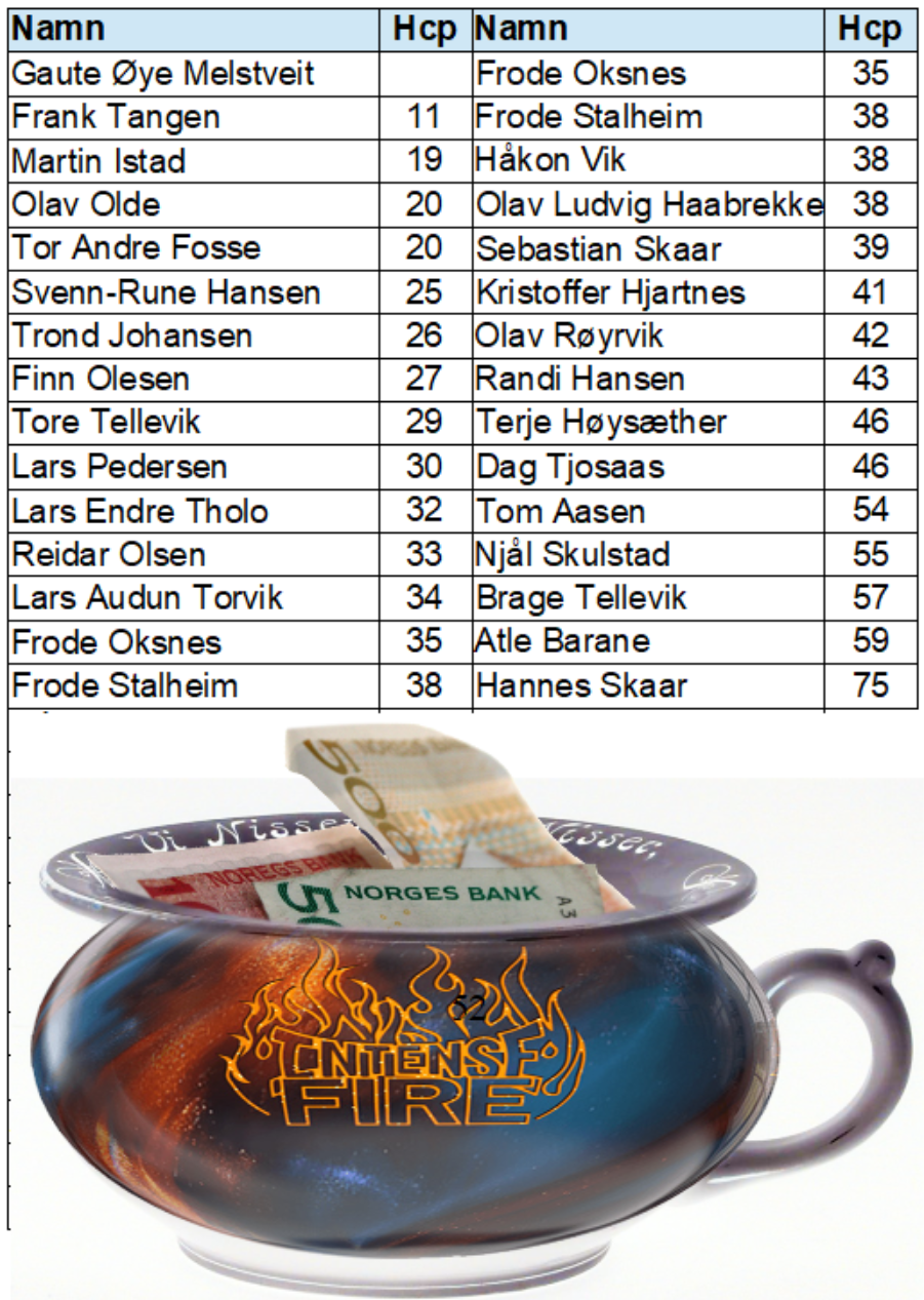 - Heile påmeldingsavgifta går til den/dei som har høgaste enkeltserien den veka inkl. hcp