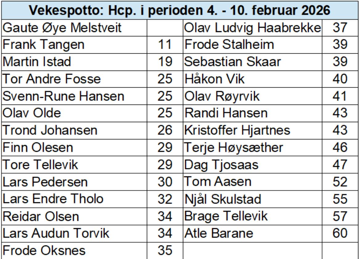 - Er du ikkje registrert i hcp-lista over her, kan du senda snittet du trur du har til 41573625.
