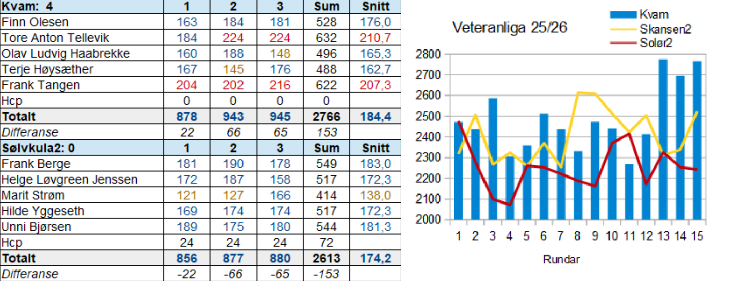 Ny kjempekamp av veteranlaget vårt i kveld og ny 4-poenger. Med 3 poeng ned til nedrykksstreken treng me i verste fall 5 poeng på dei to siste kampane for å vera sikre på å behalda plassen i 4. divisjon. Så plassen er ikkje så trygg som underteikna trudde.