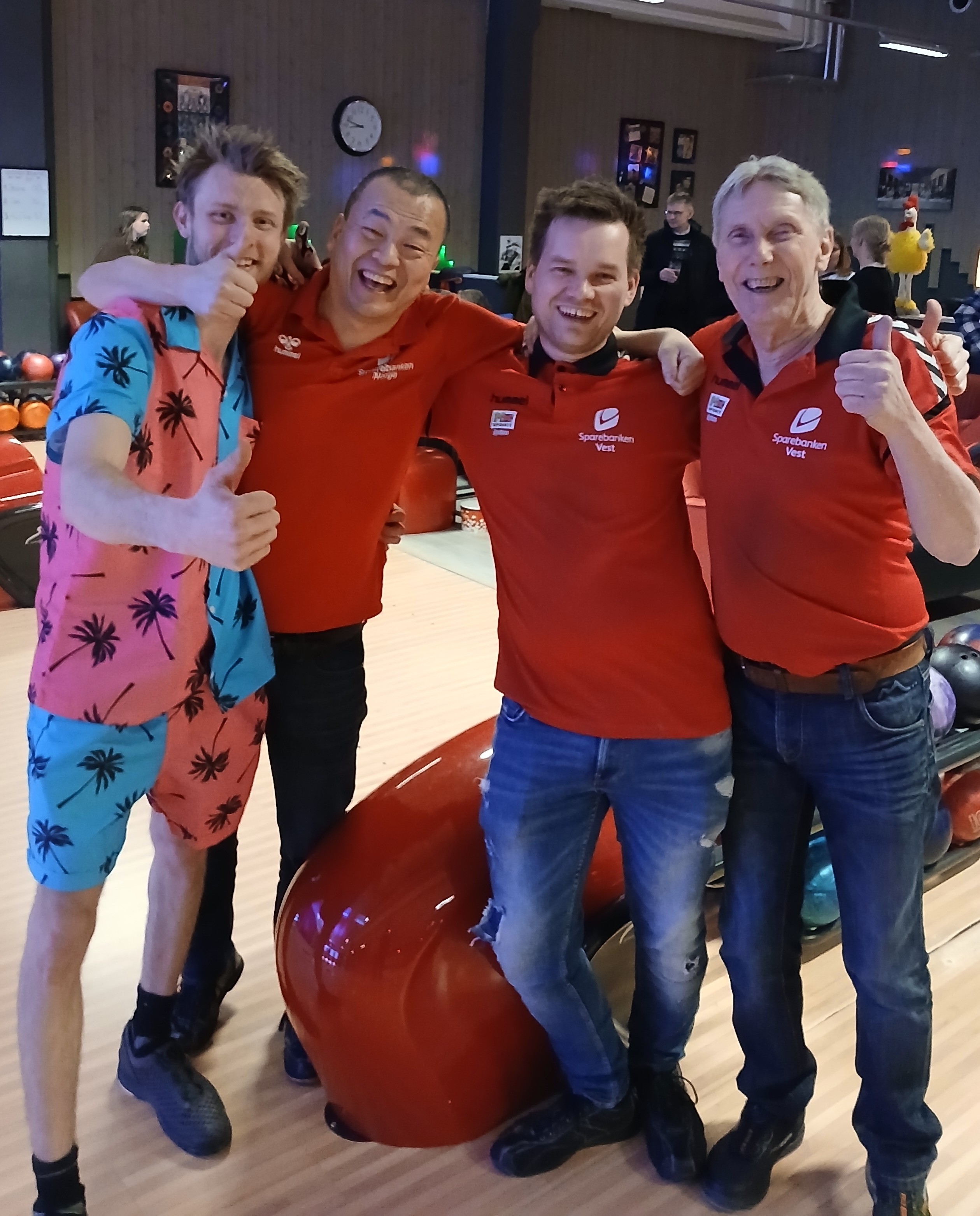 Ti medlemer frå Kvam bowlingklubb deltok i vossabyggmeisterskapen palmefredag, og dei forsynte seg grovt av premiebordet. I dobbel vart det finalespel mellom Martin/Trond og Frode S/Frode O. Det vart ein jamn kamp, der Martin og Trond drog det lengste strået.